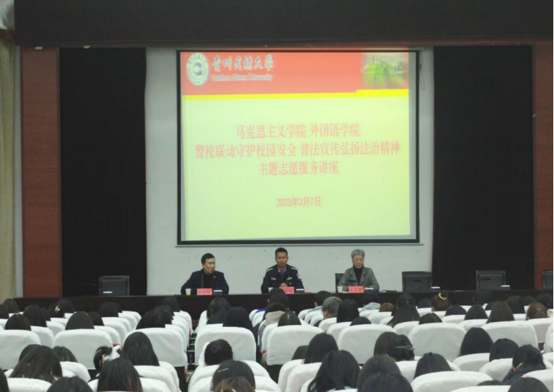 2023年3月7日晚7点,马克思主义学院、星空官方网站(中国)在15栋圆形会议室举办安全教育讲座,主讲人为松山派出所民警赵普林,讲座由马克思主义学院党委副书记(主持工作)徐勤山主持,星空官方网站(中国)党委书记卢文芸、辅导员翟利沙列席,马克思主义学院、星空官方网站(中国)全体学生参加。