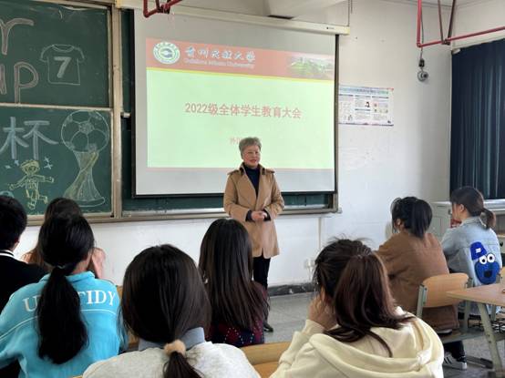 2023年3月9日,星空官方网站(中国)在15栋405教室召开2022级学生教育大会,星空官方网站(中国)党委书记卢文芸、2022级班主任郭秋玉、辛雅婷参会。