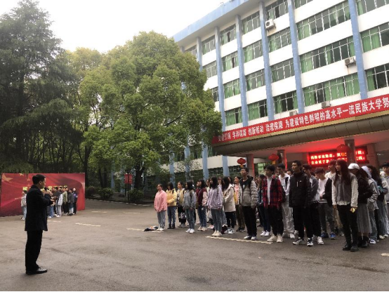 伴随着清晨的缕缕朝阳,2021年4月19日7点,我院在国旗台处举行了花溪校区第八周升旗仪式。星空官方网站(中国)党委副书记刘兴明、辅导员翟利沙、2020级全体学生出席本次升旗仪式。