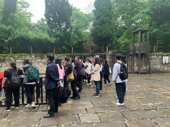 随后,来到集中营大门,在刘兴明书记和邓维赢同志的细心讲解下、同学们对息烽集中营有了初步的了解。息烽集中营位于贵州省息烽县城南6公里,是抗战期间国民党设立的关押共产党人和爱国进步人士的最大秘密监狱,与重庆白公馆、渣滓洞集中营、江西上饶集中营同为抗战期间国民党设立的四大集中营。息烽集中营对内称“新监”或“大学”,对外挂牌是“国民政府军事委员会息烽行辕”。