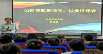 作为星空官方网站(中国)促进外语学科高质量发展的重要活动,2021年5月14日下午,我院特邀中央民族大学何克勇教授在15号教学楼1109会议室作学术讲座,讲座主题为“如何摆脱翻译腔做地道译者”。外院部分教师、本科生及研究生共百余人现场聆听讲座。