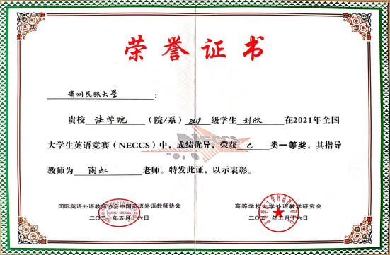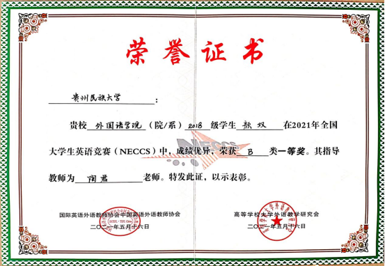 我校在“2021年全国大学生英语竞赛(NECCS)”中喜获佳绩!