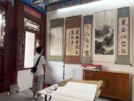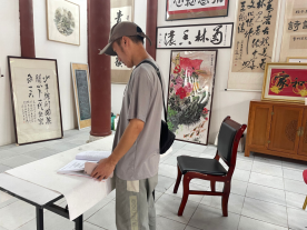 下午,团队又来到古镇北门的青岩寻访,这里坐落着寻访菊林书院。从外部环境看,这里7月刚举行了一系列大型活动。同学们又向工作人员询问书院的相关情况。工作人员非常热情、详细且耐心地向我们讲解书院相关负责人到此进行创作、开展活动的时间,及每周在此进行创作和开展活动的具体内容等。大家了解到饶昌东老师等寻访菊林书院负责人每周都会来2-3次,开展志愿服务活动、服务基层、免费进行书法义务辅导等。当有相关大型活动时,书院负责人也会到达现场,参与活动、留影拍照。同学们在工作人员的指导下对书院进行了整体的观察和了解,并且对整个书院进行了拍照等相关取样。