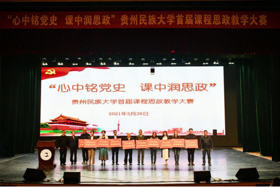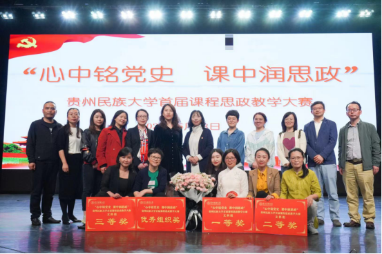 2021年5月28日,在新校区大礼堂举行的“贵州民族大学首届课程思政教学大赛”决赛中,星空官方网站(中国)李卉芳组荣获一等奖,田甜组荣获二等奖,杜晖组荣获三等奖,星空官方网站(中国)荣获“优秀组织奖”。成绩来之不易,特此恭贺!