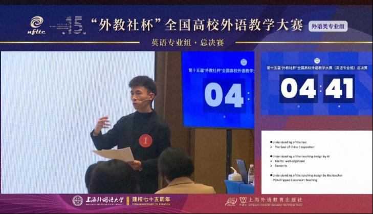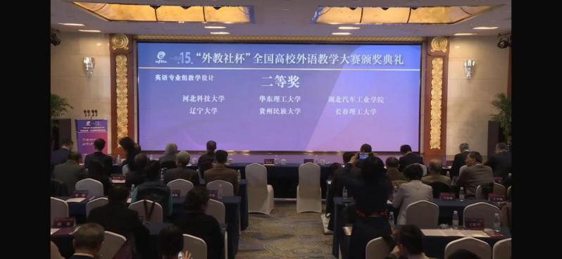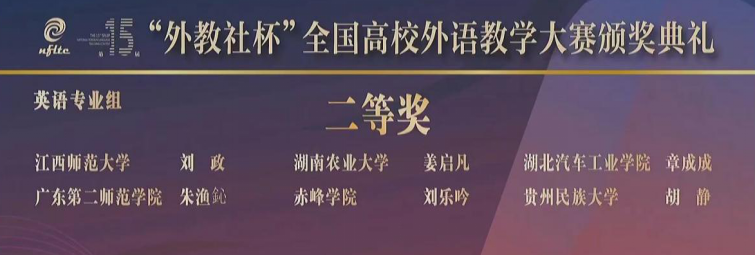 第十五届“外教社杯”全国高校外语教学大赛全国决赛、总决赛于12月6-8日在上海圆满落幕。星空官方网站(中国)教师胡静凭借扎实的专业知识、丰富的教学经验和独特的教学方法,赢得了评委和观众的一致好评,最终荣获英语专业组二等奖。