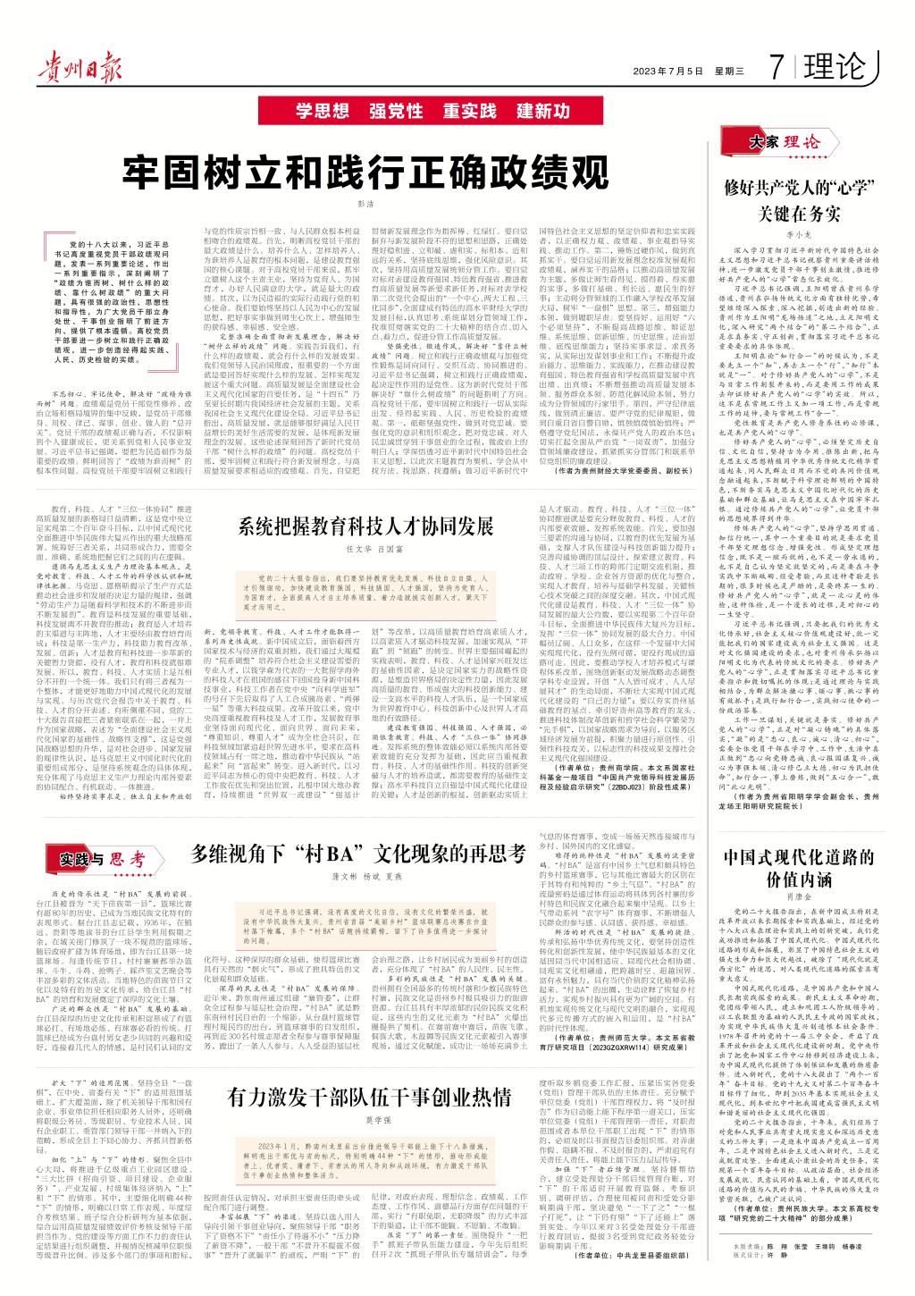 星空官方网站(中国)院长肖唐金在贵州日报理论版发表文章:中国式现代化道路的价值内涵