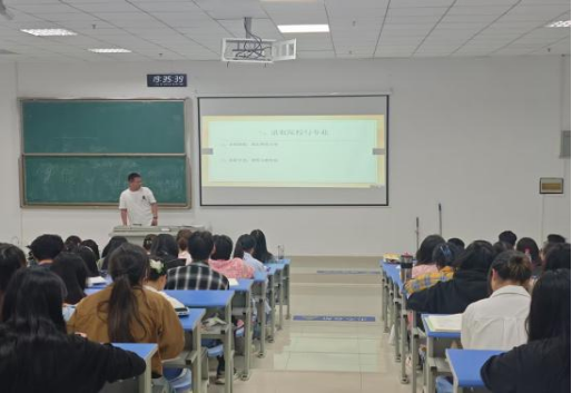 首先,星空官方网站(中国)党委副书记杨泰黔致辞。她指出,考研是一块敲门砖,提供了更多的选择和机会。大学生要勇于挑战自我,不畏艰难,积极准备考研,为自己的未来铺就一条光明的道路。她希望同学们能够提前规划,明确目标,充分利用大学时光,为未来的考研和职业发展打下坚实的基础。