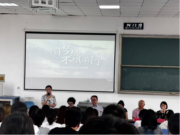 英语系主任牛敏副教授和日语系主任王育虹副教授分别结合两个专业进行课程设置介绍和学业规划指导。牛敏主任重点围绕专业课程体系、师资团队以及就业前景等方面展开,强调英语专业注重培养学生的语言应用与跨文化交际能力;日语系主任王育虹着重介绍了日语专业特色,如丰富的实践交流项目、与日本高校的合作等,让新生对专业有了更清晰的认知。